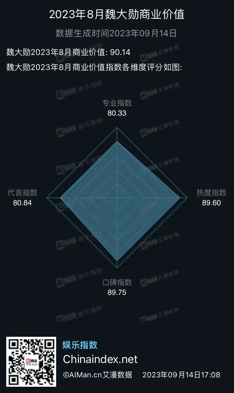 电视剧演员的商业价值在8月同样也有很好的表现。8月,电视剧《我的人间烟火》热播,对孟晏臣一角的出色演绎,让魏大勋在这个暑期圈粉无数。