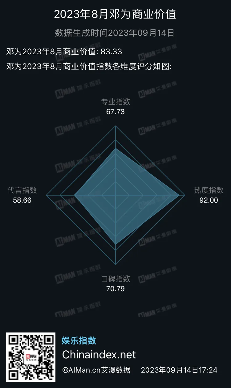 热度指数和代言指数的提升,也帮助邓为在8月的商业价值上取得了较大的提升。