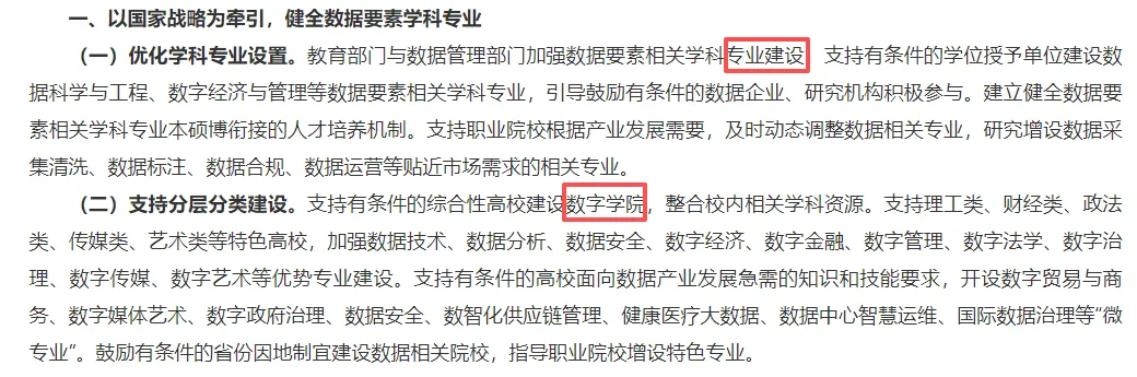 近日,国家发展改革委等五部门联合发布《关于加强数据要素学科专业建设和数字人才队伍建设的意见》,如今数字经济越来越普及,数据已成为推动产业发展、社会进步的关键力量,这也给面临专业选择的高中生提供了清晰方向,下面就跟着小优一起,看看相关专业的具体情况吧。