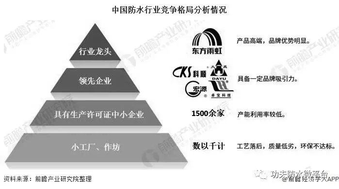 1、中国建筑防水材料行业市场集中度低