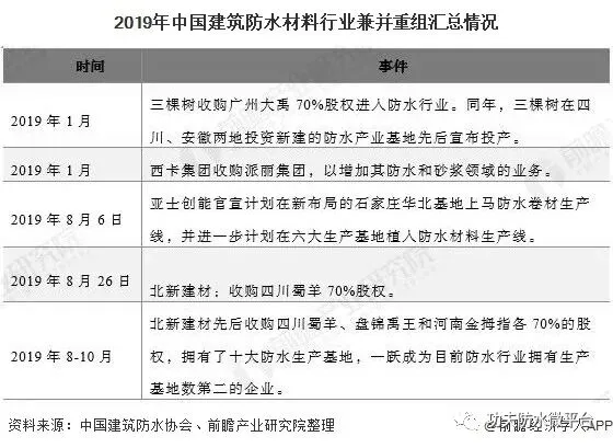 3、2019年是防水行业的并购重组年,未来行业格局有望重塑