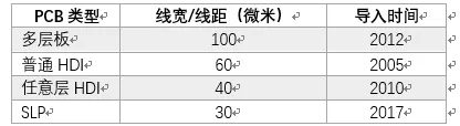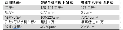 受智能手机、平板电脑和穿戴设备等电子产品不断向智能化、小型化和功能多样化的发展趋势,PCB上需要搭载的元器件大幅度增加但要求的尺寸、重量、体积却不断缩小。在这样的背景下,PCB导线宽度、间距,微孔盘的直径和孔中心距离,以及导体层和绝缘层的厚度要求都在不断下降,而传统HDI受限于制程难以满足以上要求。因此堆叠层数更多、线宽线距更小、可以承载更多功能模组的SLP技术成为解决这一问题的必然选择。