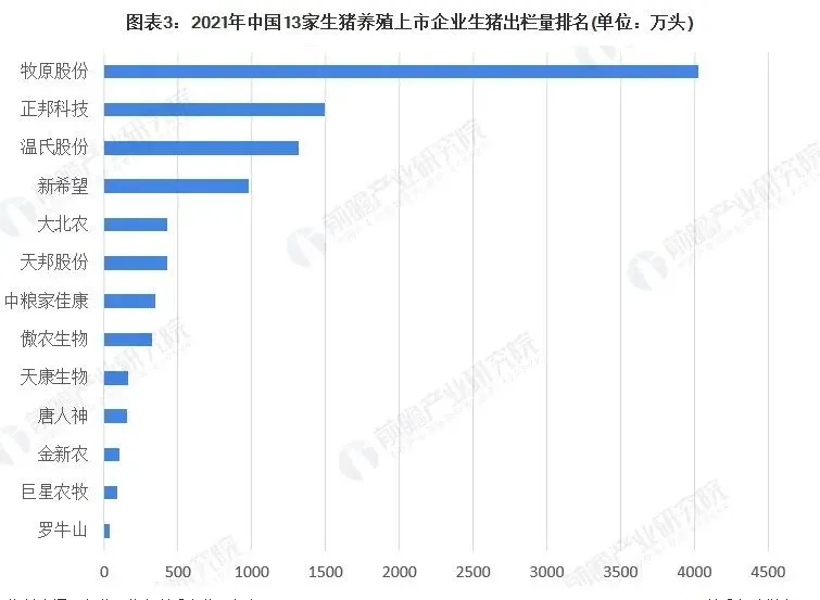牧原股份的生猪出栏量居于首位