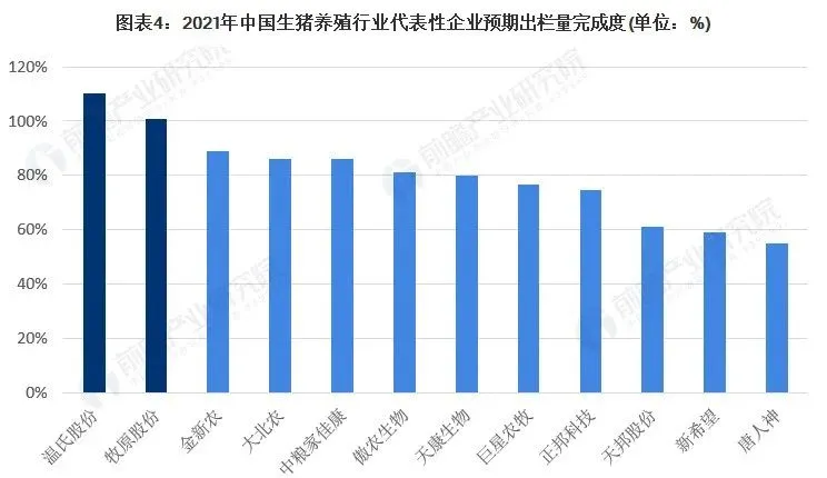 从预期出栏量完成度来看,温氏股份、牧原股份较好完成2021年初制定生猪出栏目标。