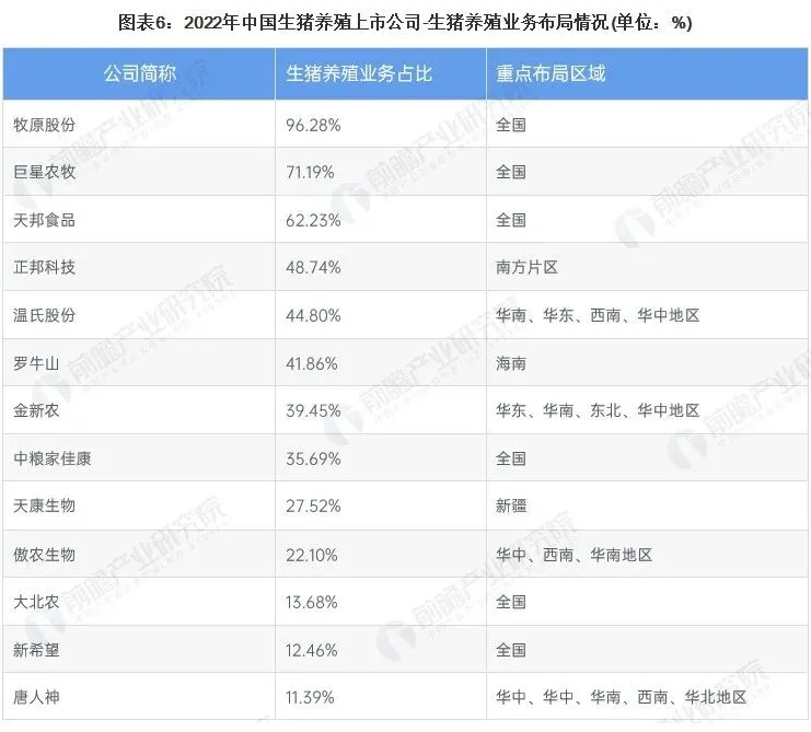 中国生猪养殖行业企业布局及竞争力评价: