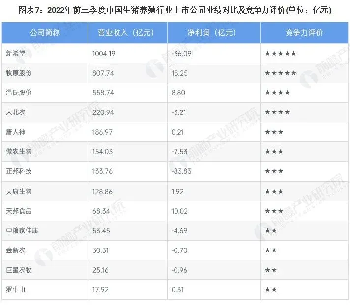 从净利润来看,2022年前三季度,牧原股份、天邦食品、温氏股份位于行业前三名,净利润分别为18.25亿元、10.02亿元和8.8亿元。