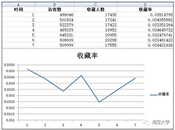 很简单的图,大家可以在EXCEL中自己做出来,这个表格做出来,用途什么?用来跟你自己的收藏率趋势图进行对比,如果你的收藏率一直在行业均值以上,那么一般情况下,你的搜索表现(尤其是新品爆起的可能性)都要更好。