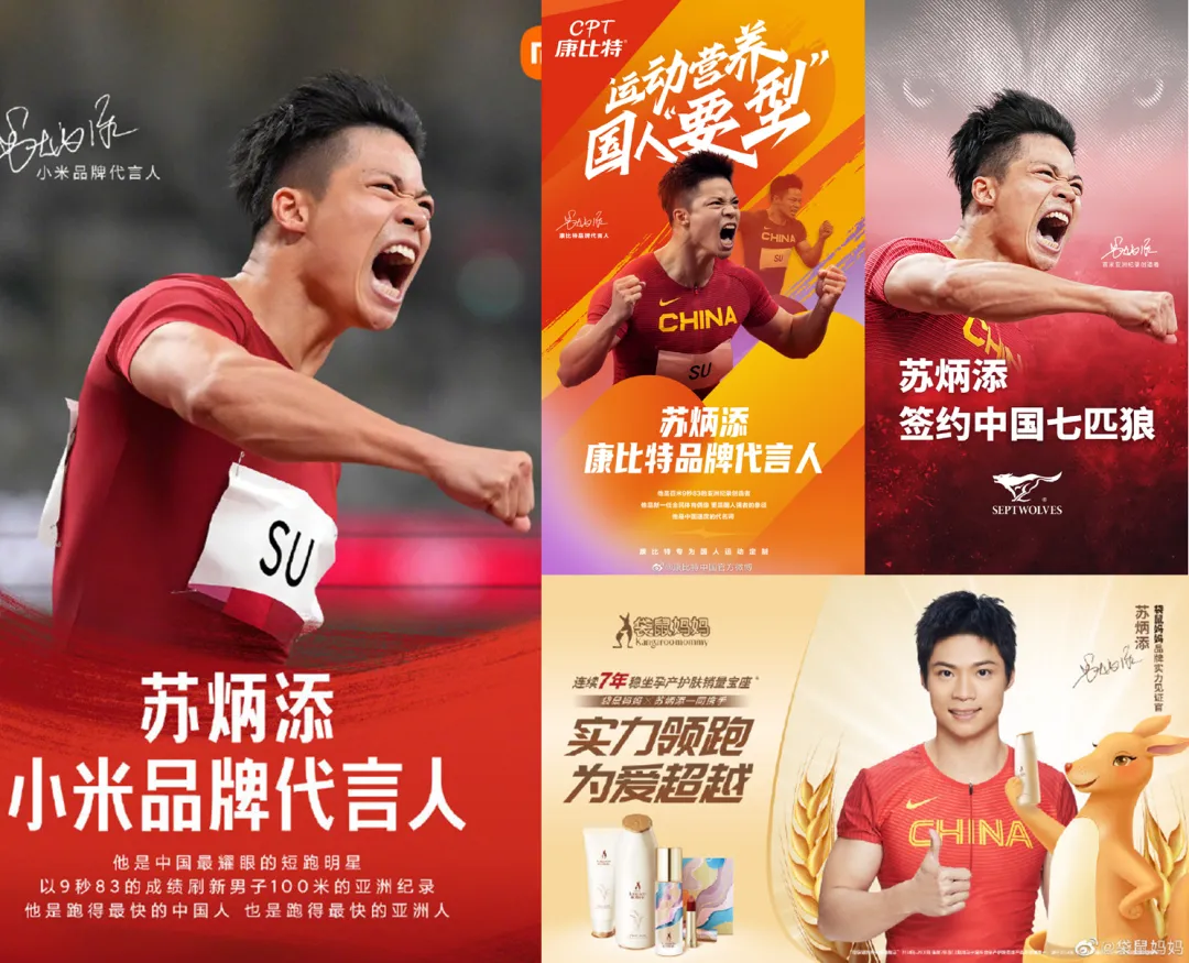 这一创造历史的成绩和荣誉,不仅令苏炳添成为国人的骄傲,更成为商业品牌的新宠。8月,苏炳添一口气拿下小米品牌代言人,七匹狼品牌代言人,康比特品牌代言人,袋鼠妈妈实力见证官等多个新代言身份。