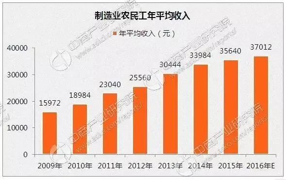以自动化设备的典型代表工业机器人为例,随着机器人的高效性、稳定性、精准性逐渐被认可,工业机器人经济性愈发明显,对体力劳动者的替代作用也在日渐显现,工业机器人的经济替代效应拐点已经出现,并在2013年、2014年行业呈现出了爆发式的增长态势,预计到2025年预计我国制造业重点领域将全面实现智能化,其中关键岗位将由机器人替代。随着劳动力成本上升趋势的持续,以及工业机器人的价格下降、性能提升、应用领域逐渐扩大,工业机器人行业仍将保持高速增长的势头。近年来,我国制造业工人年平均工资如下图所示: