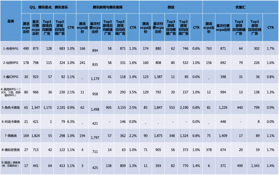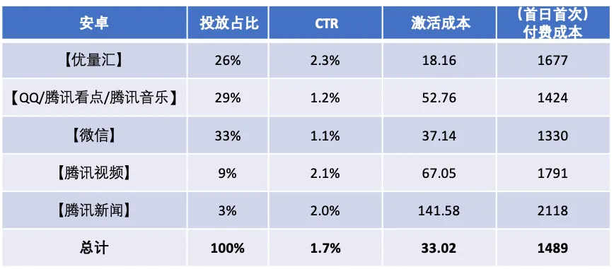 投放占比:较上月波动不大,较平稳; 激活/付费成本:较较上月波动环比来看,微信和QQ/腾讯看点/腾讯音乐2个流量相对稳定;涉及细分广告位影响及品类、新游大推等多变量影响,详细可查看后续分品类分版位参考了解。