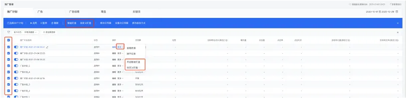 自定义盯盘:开放策略设置,客户可自行调整预算分配、出价、复制/启停广告等盯盘策略,更精细化的满足客户盯盘诉求