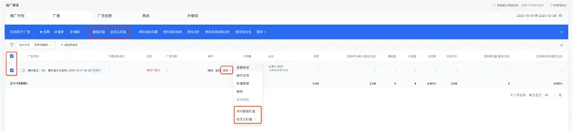 广告主创建计划/广告后,可使用系统的智能盯盘或自定义盯盘托管能力。