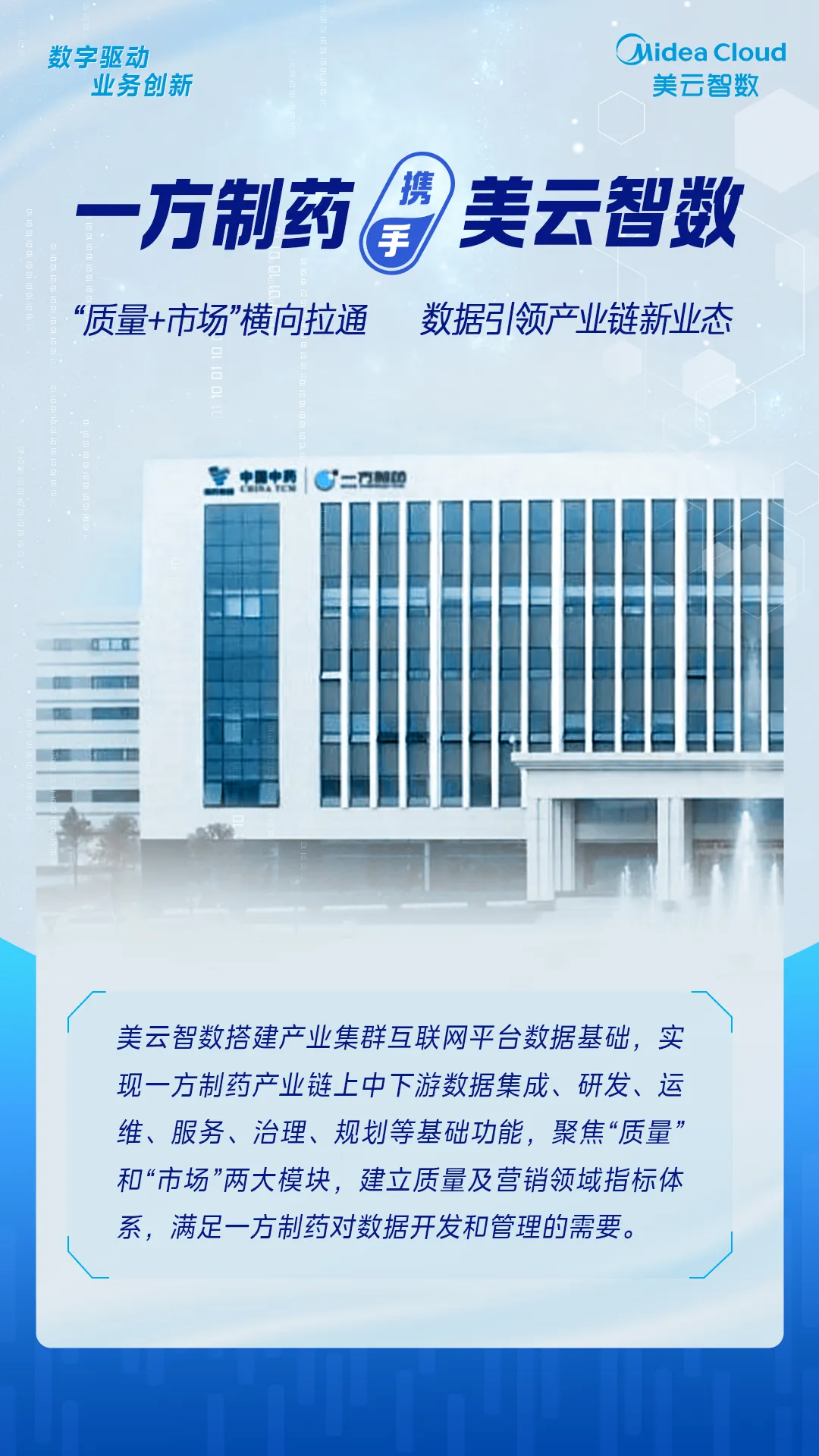 中国是全球第二大医药医疗市场,行业发展与GDP增长息息相关。医药行业在后疫情时代发生了一系列变化,如消费者偏好和行为的转变、生命科学与医疗健康的整合、数字医疗技术的快速发展等。在这样的大环境下,许多医药医疗企业纷纷顺应时代潮流,加强变革创新,开展数字化转型。美云智数作为世界五百强企业美的集团数字化能力的对外输出单位,沉淀了十年数字化转型的宝贵经验,依托于万东医疗、瑞士格医疗等美的医疗先进实践能力,以先进的技术和成熟的解决方案服务多家头部及腰部企业,在智能制造、数字化供应链、大数据分析、数字身份业权一体、人力资源体系等方面深受认可,与众多知名医药医疗企业展开深度合作。