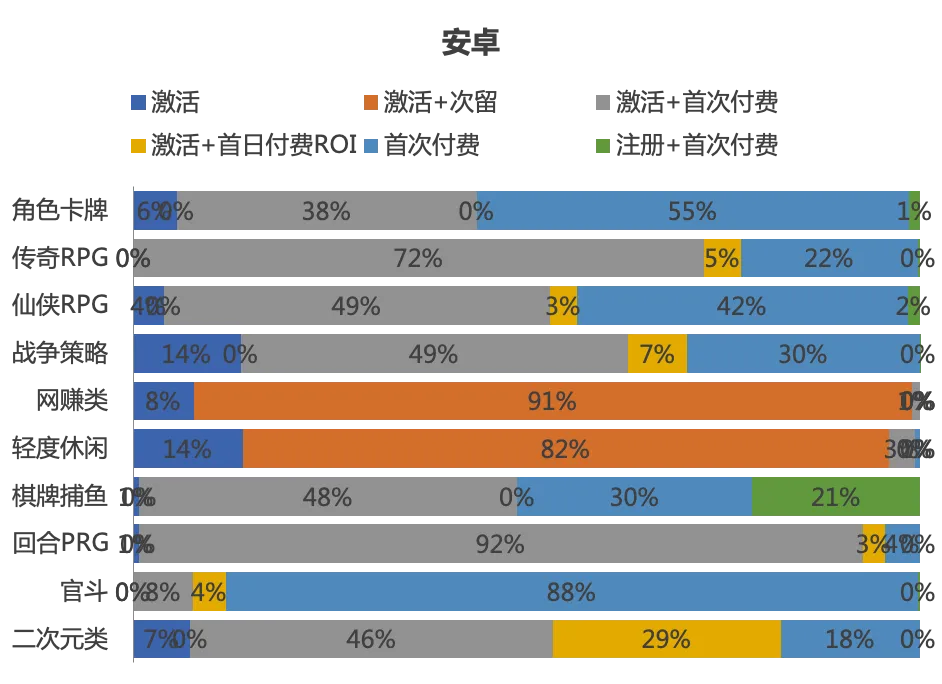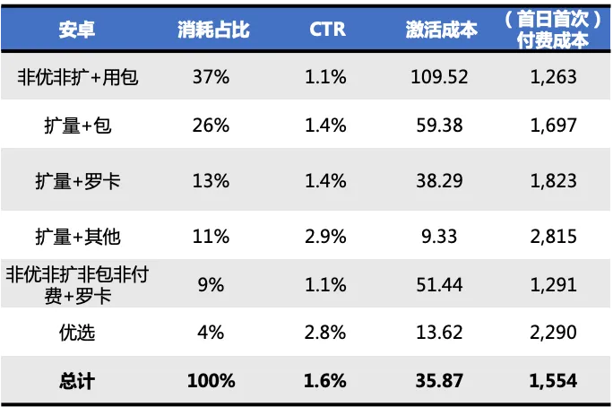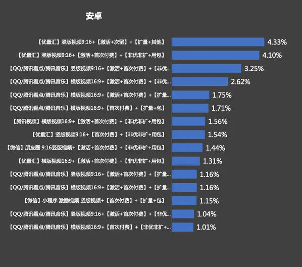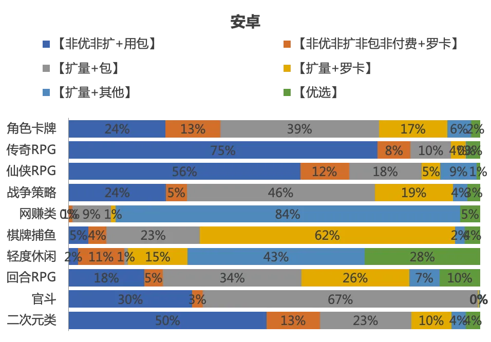 游戏大盘库存处维稳状态,除双12期间合约锁量增多,其余时间流量整体充裕。预计对游戏行业拿量影响除XQ和XS有约5%的负向影响,其他相对影响较小,大家可常规投放。·投放占比: 较上月,双端【扩量+包】投放占比分别上涨6%和5%,主要是使用DMP挖包功能客户增加(手游细分画像上架标签广场);同时新游大推大部分广告均开启扩量,致竞争激烈,拉高整体扩量使用率和成本。建议:双端客户可增投【扩量+包】,搭配精准一方包和DMP标签广场二方包,保持激活成本以及付费成本波动相对平稳;IOS可尝试【扩量+罗卡】功能,棋牌捕鱼和战争策略品类反馈效果正向,已尝试加大使用频率。·安卓:轻度休闲类(网赚类+轻度休闲)和中重度(传奇+仙侠+角色卡牌+回合制)在优量汇投放占比大,优量汇获取用户“激活成本以及付费成本”相对低,可低成本获取高价值用户,愿意加大力度尝试投放;·iOS:轻度休闲类(网赚类+轻度休闲)及中重度热门品类(传奇+角色卡牌+官斗+仙侠+战争策略)在微信流量上投放占比大,在微信流量更易获取高价值用户。·双端定向分布来看,轻度游戏(轻度休闲+网赚)更愿使用【扩量+其他】(如扩量+基础定向),扩量比例为行业最高为60%-94%;主要因为品类受众用户广泛,广告主愿意在定向环节,尝试扩大范围来寻找潜在转化用户;·传奇/仙侠/二次元/官斗使用【非优非扩+用包】和【扩量+包】占比大,强依赖人群包,操作相对保守,建议:1. 借鉴棋牌捕鱼/战争策略,提炼和迭代多维度的关键词进行投放, 使用【扩量+罗卡】;2. 应用一方优质人群 & DMP标签广场挖掘优质二方包,使用【扩量+包】。·双端出价形式来看,轻度游戏(网赚和轻度休闲)使用“激活+次留”方式出价投放比例高,偏向于稳定用户活跃·中重度游戏,除官斗小众品类,出价形式相对保守,使用“首次付费出价”比例为88%和67%;其它品类均使用双出价(激活+首次付费)比例高,其次是首次付费出价;偏向于获取潜在付费人群。