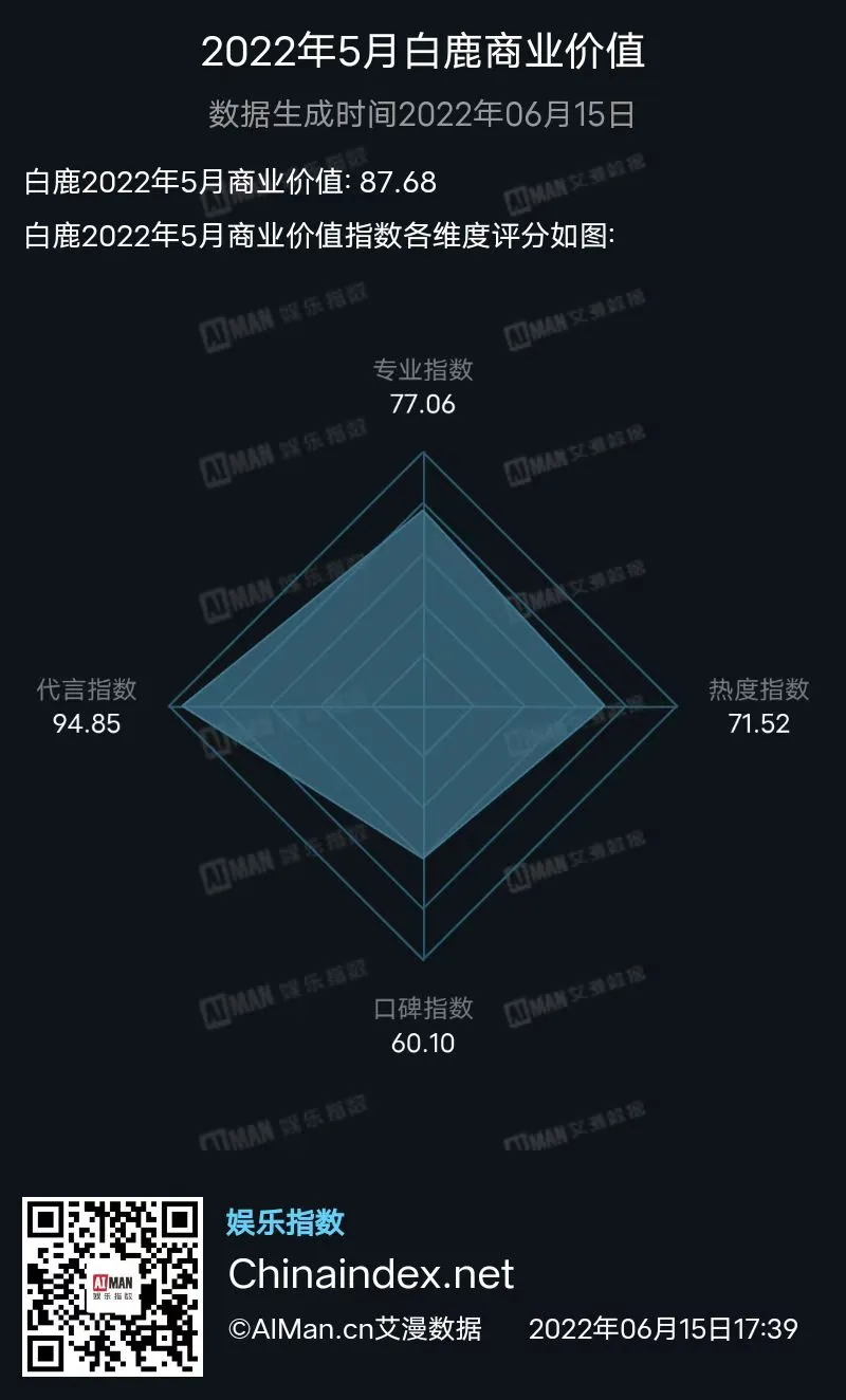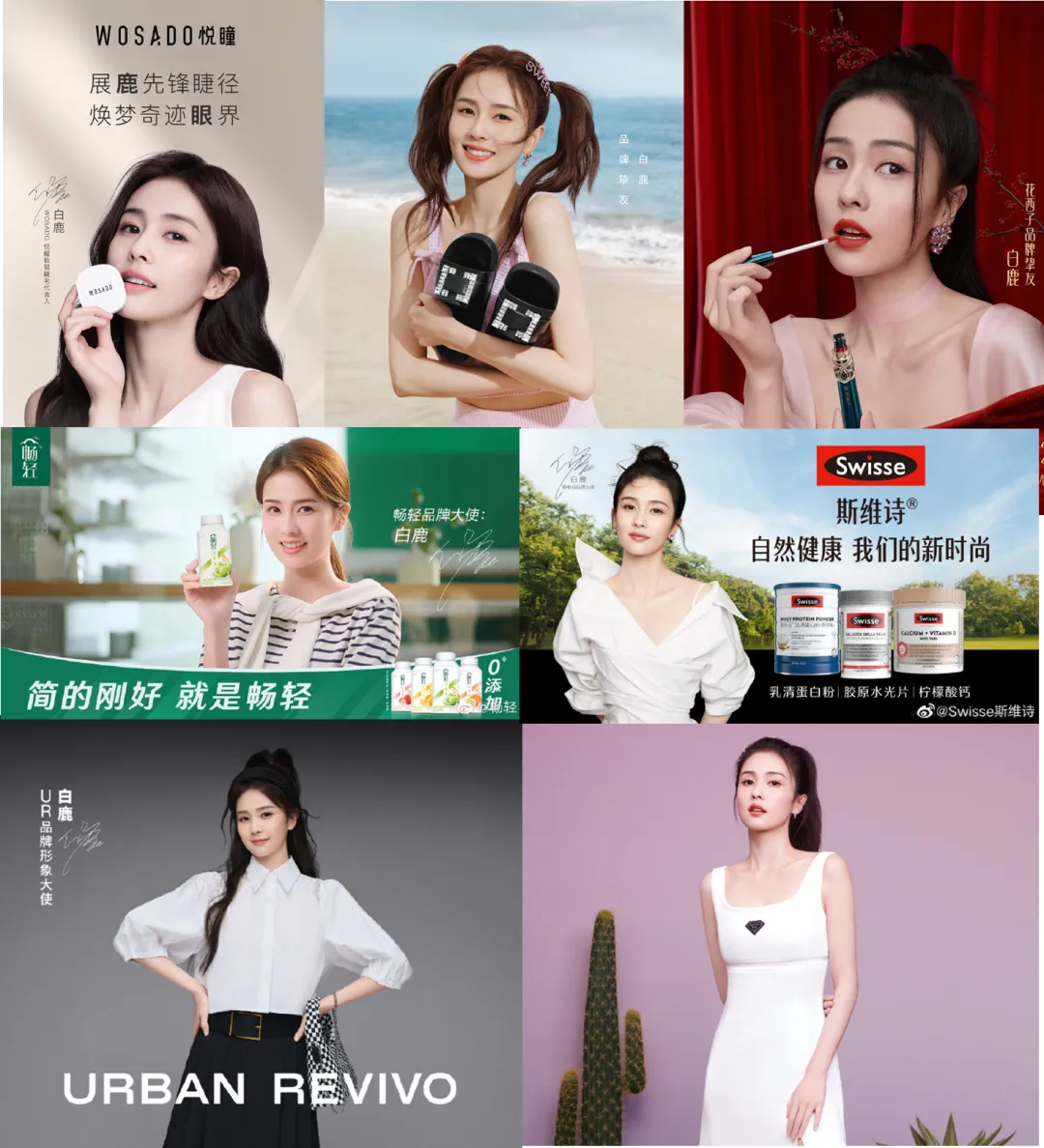 而白鹿在5月也收获了不少新代言身份,其中包括美妆品牌悦瞳软磁睫毛代言人,意大利鞋履品牌Sergio Rossi品牌挚友,美妆品牌花西子品牌挚友,乳品品牌畅轻品牌大使,保健品品牌斯维诗品牌大使,服装品牌URBAN REVIVO品牌大使,服装品牌bebe品牌代言人。5月,白鹿商业价值表现也相当优秀。