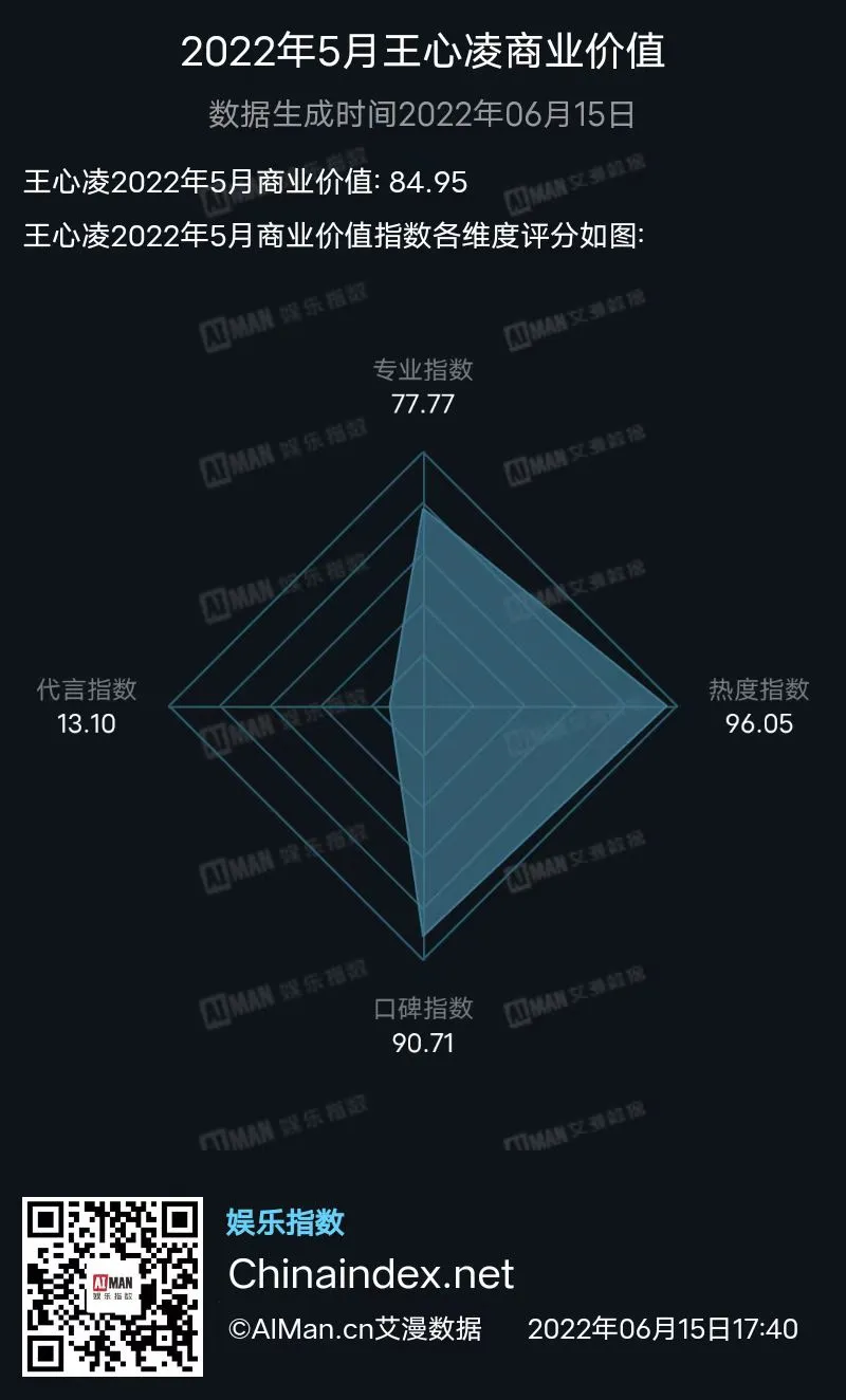 另外,《乘风破浪》第三季开播,甜心教主王心凌的初舞台《爱你》,炸出无数中年男粉丝,王心凌的数据也是断层式领先其她姐姐。因此,她在5月的商业价值成绩也蹿升明显。后续随着节目播出,相信王心凌的代言官宣也会随之而来。
