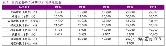 2、第三方IDC企业成长性来自于产能扩张,收入规模增长主要来源于机柜数量增长。