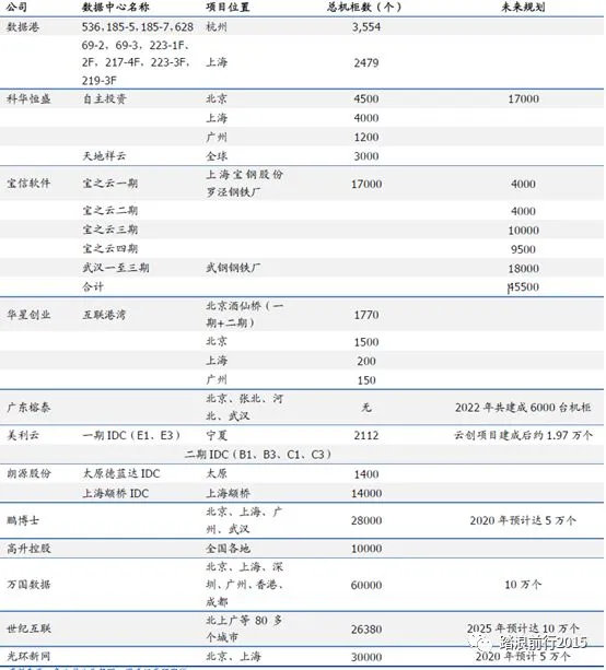 下图是我们重点关注的的第三方IDC厂商上,他们的主要布局都是围绕北上广进行。