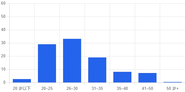 整体来看,年龄集中在 20–35 岁,与全球开发者画像高度一致。