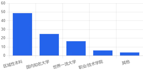 本科与硕士合计接近九成,与全球开发者的学历结构相当。 近一半来自普通本科院校,说明 Web3 并不是只发生在「清北+海外名校」的小圈子。 世界一流大学的占比略高,部分原因在于:顶尖学校学生更容易参与黑客松、研究项目,也更愿意在新领域试水。