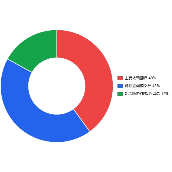 高度依赖翻译工具:能使用英文生态,但同步信息和参与讨论时永远慢半拍。 能独立阅读文档和源码:是当前 Web3 的主力建设者,能看懂讨论、但未必敢写长文或主持会议。 能流畅协作甚至接近母语:比例不高,却决定了谁能进入协议团队、核心客户端和国际社区。