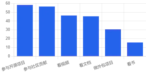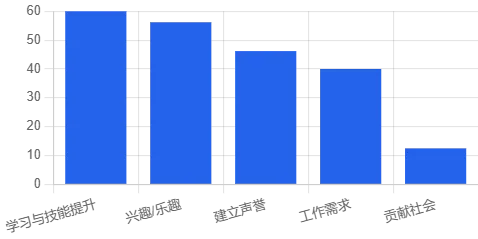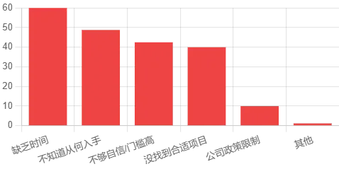 动机几乎被「学习与技能提升」支配,其次才是兴趣、声誉和工作需求;而真正阻碍大家的是:缺乏时间、不知道如何开始、不够自信、找不到合适项目。