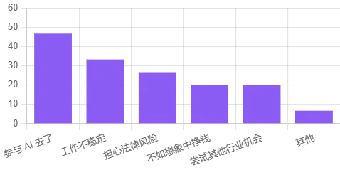 退坑样本虽少,但结构非常典型:转去做 AI、工作不稳定和法律风险等位居前列,「不如想象中挣钱」只是其中一项,而不是全部。