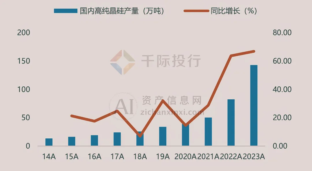图 我国多晶硅年度供给量和同比增长