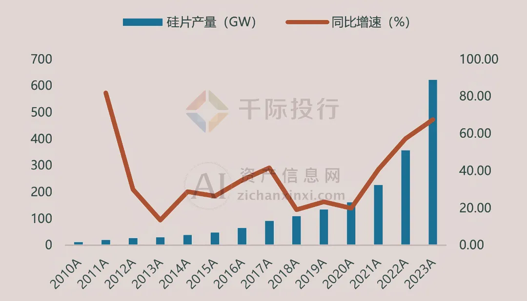 图 我国光伏硅片产量和同比增长