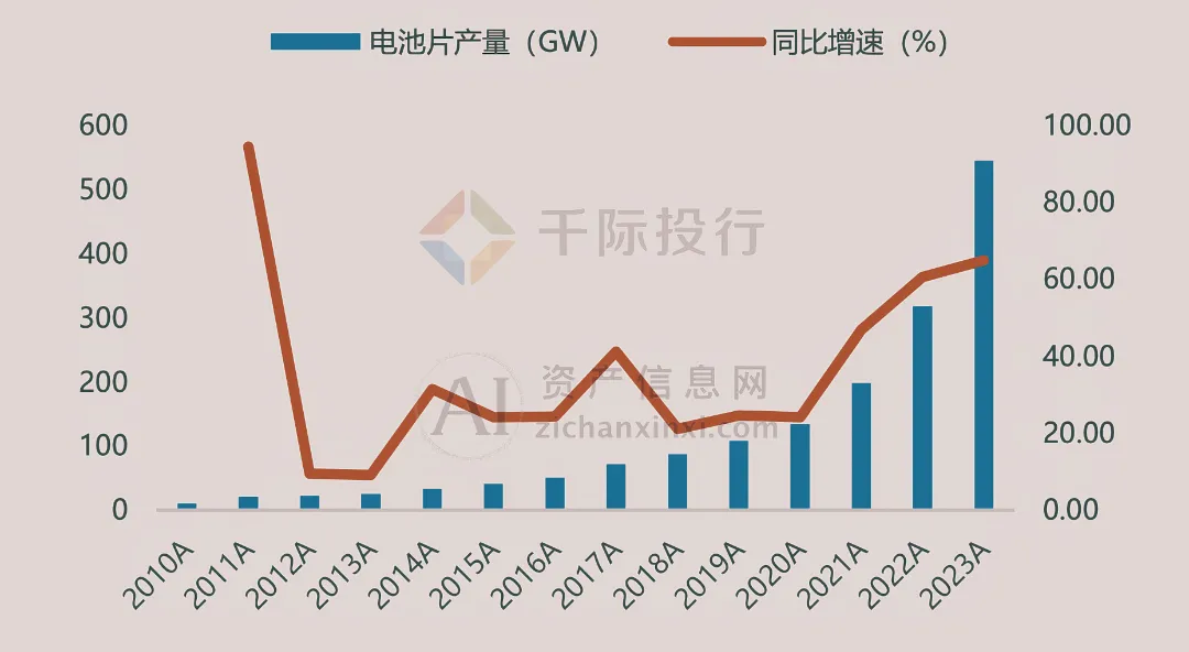图 我国太阳能电池产量和同比增长