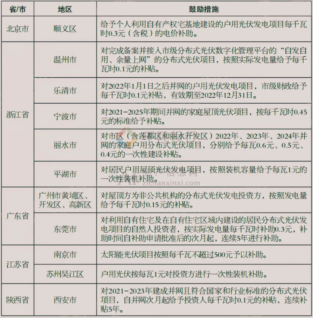 图 户用光伏地区性鼓励措施一览表