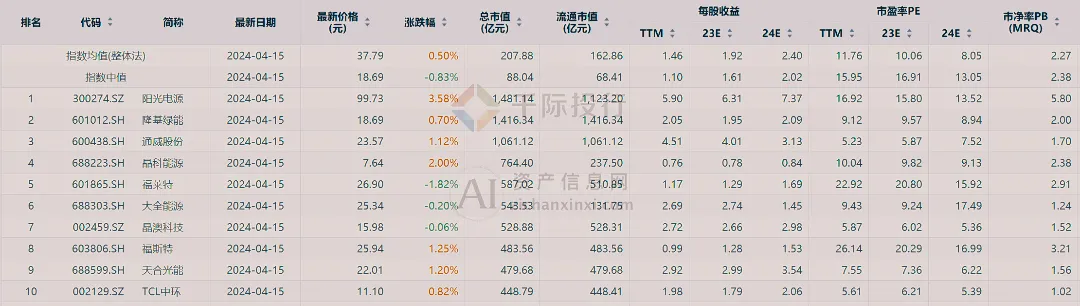图 光伏设备指数 884222.TI 财务数据