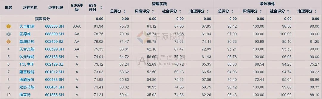图 指数成分股同花顺 ESG TOP10