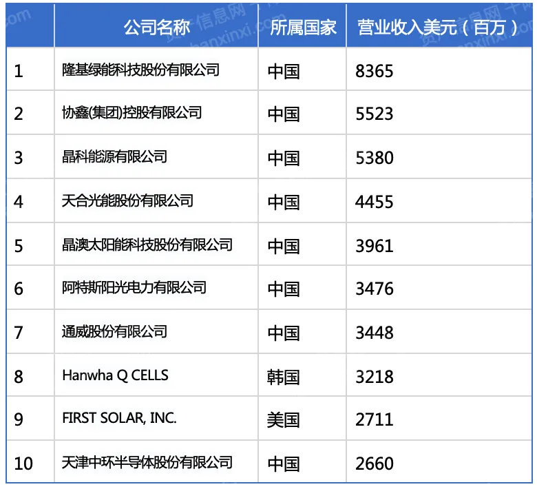 表 2021年全球光伏龙头企业Top 10