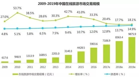 艾瑞分析报告指出,尽管当前在线旅游行业进入稳定发展阶段,行业增长速度开始放慢,但在线旅游行业整体增长速度仍高于中国旅游业总收入增长速度,线上渗透率将保持增长,预计2019年线上渗透率接近15%。结合前述内容,不论是国际市场还是国内市场,在线旅游整体呈现平稳较快发展态势,行业发展具备可持续性。