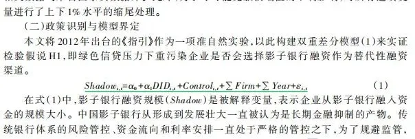 文章研究了两个问题:(1)《指引》出台之后,污染企业贷款受限,是否会从影子银行获得资金;(2)从影子银行获得资金后,是否有助于促进企业的绿色创新。