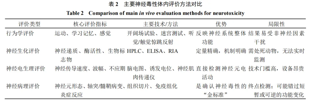 指导原则要求的一般神经毒性评价采用体内评价方法,包括行为学、神经生化、神经电生理、神经影像等方面[13-14]。