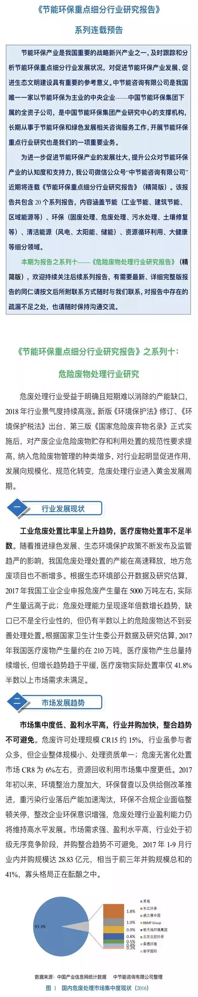 节能环保产业是我国重要的战略新兴产业之一,及时跟踪和分析节能环保重点细分行业发展状况,对促进节能环保产业发展、促进生态文明建设具有重要的参考意义。