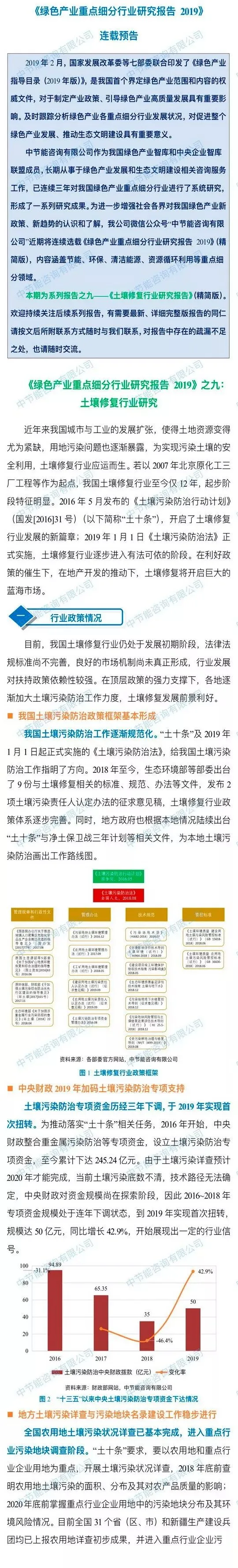 《绿色产业重点细分行业研究报告 2019》之九:土壤修复行业研究