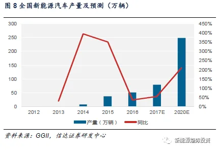 下游车型方面:2017年1-5批《新能源汽车推广应用推荐车型目录》总共有1763款车型,其中EV客车有815款,PHEV客车有285款,车型主要集中在客车。此外专用车进入目录,从数量上看已经超过2016年的总量,同时随着四通一达的物流车电动化,下半年物流车有望爆发,GGII预计到2020年全国纯电动物流车产量可达到18.9万辆。