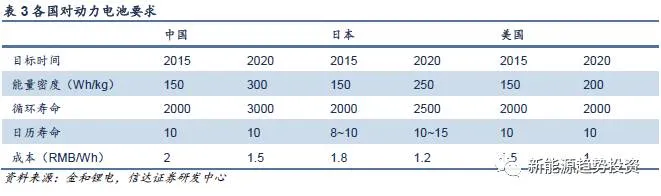 表3 各国对动力电池要求 5