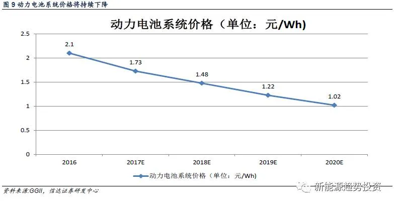 图9 动力电池系统价格将持续下降
