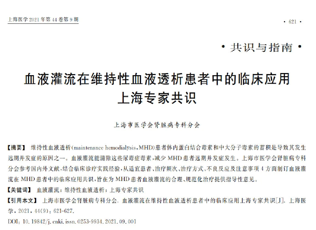 [4]上海市医学会肾脏病专科分会.血液灌流在维持性血液透析患者中的临床应用上海专家共识[J].上海医学, 2021, 44(9):621-627.
