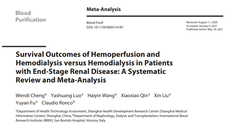 荟萃分析力证联合方案优势,HP联合HD开创血液净化研究新征途