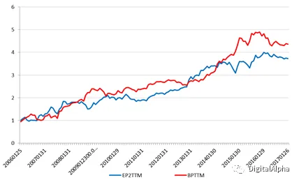 估值因子采用剔除非经常性损益的盈市率(EP2TTM),账面价值比(BPTTM)这两个常见的估值类因子。