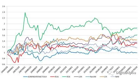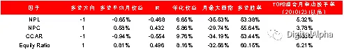 风险监管类因子考量了银行业内关注较多的衡量银行应对风险能力的指标,包括不良贷款率(NPL)、存贷比(LDR)、不良贷款拨备覆盖率(NPC)、核心一级资本充足率(CCAR)和产权比率(Equity Ratio)。