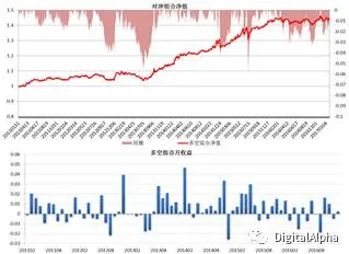 我们先选择比较常规的估值成长的4个因子构建的多因子模型,组合的对冲收益为6.34%,IR为1.28,整体的增强效果还是比较明显的(图9)。