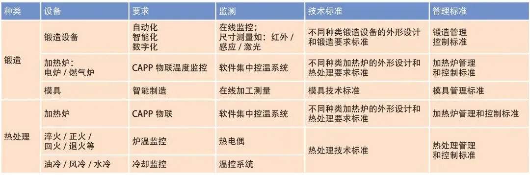 目前,要着手以锻造行业为重心的基础研究工作,形成以锻造、热处理为中心的工艺技术、设备(锻造、加热炉)、测量(热冷尺寸监控和测量)、管理(例如批的管理)、材料、标准等系统性策划,形成行业权威、专利,控制并带动与锻造相关联的所有上下游企业,替代目前被动接受用户设计要求来生产锻件的模式,研究内容见表1。