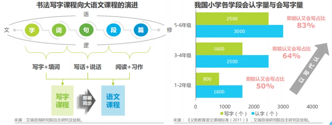 对于写字而言,一方面,新一代家长在自身写字训练不足的情况下,往往难以对孩子的写字任务进行规范的指导(属于书法范畴),而且写字的练习过程(练字)相对枯燥,需要科学的产品化课程来激发学生的学习兴趣。