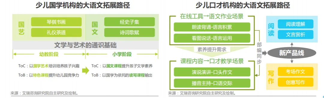 大语文课改之后,为响应部编版教材“提升传统文化授课内容权重”的号召,少儿国学培训机构大力发展国文课程,以线上微课+课程加盟的形式分别向C端与B端渗透。